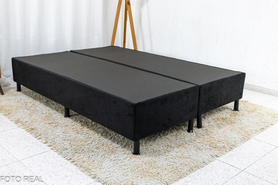 Box Casal Bipartida 138x188x38 Sued Preto Nosso Sonho