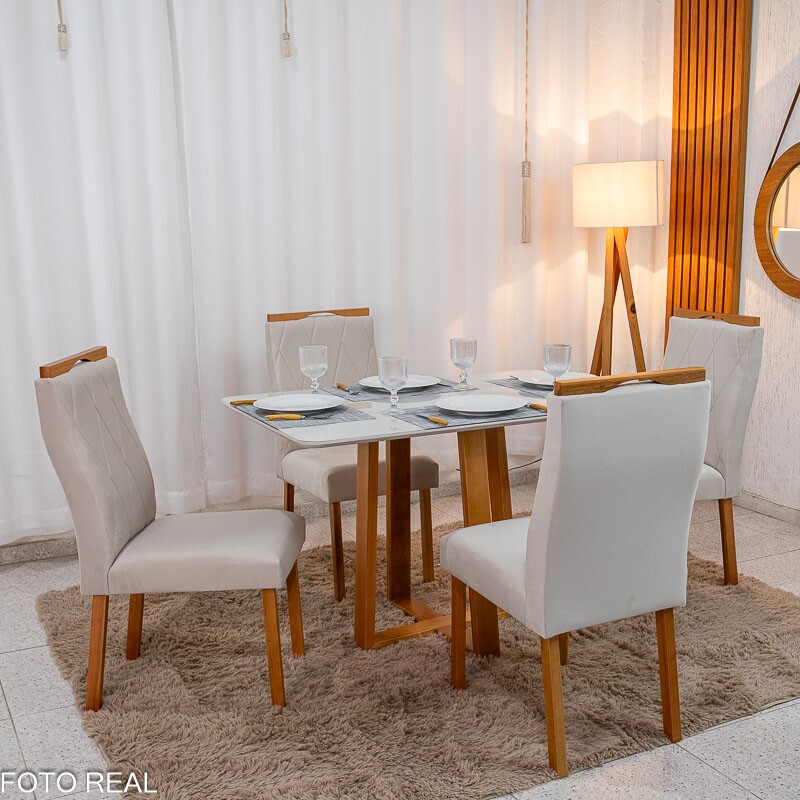 Mesa de Jantar Bellagio 108×68 Freijó UV/Tampo Off White + 4 Cad. Clara Freijó UV/Savana – Poliman