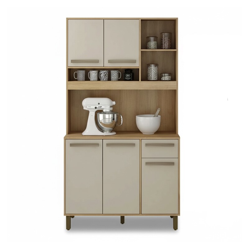 Armário Cozinha Catar Larg. 2.00m Cinamomo/Off 6 Portas 2 Gavetas – Sallêto