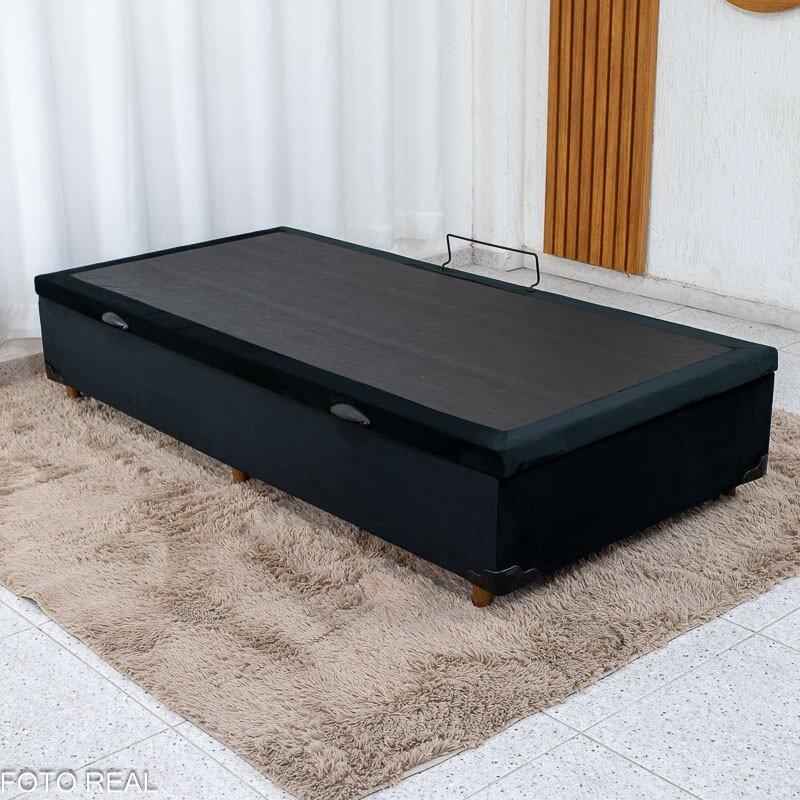 Box Baú Solteiro Pop Veludo Preto 88x188x37 – Nature