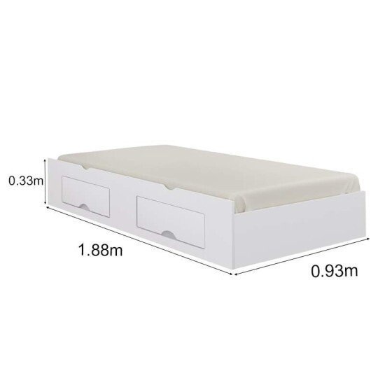 Cama Auxiliar Solteiro 2 Gavetas Branca 93x188x33 – D Doro