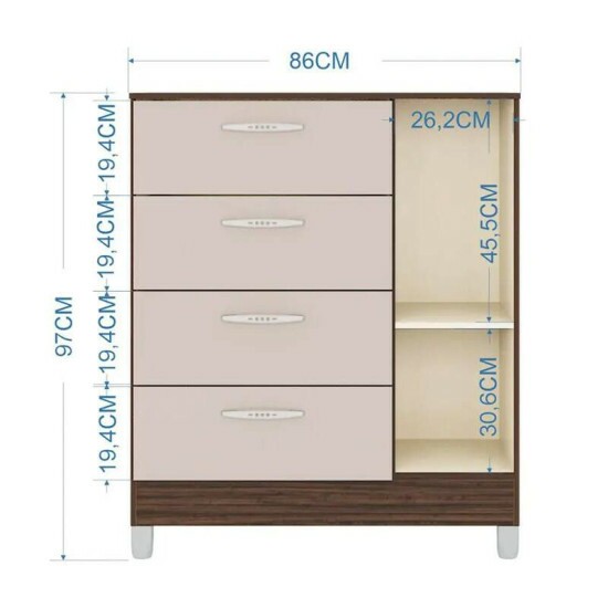 – Possui 4 gavetas com corrediças metálica