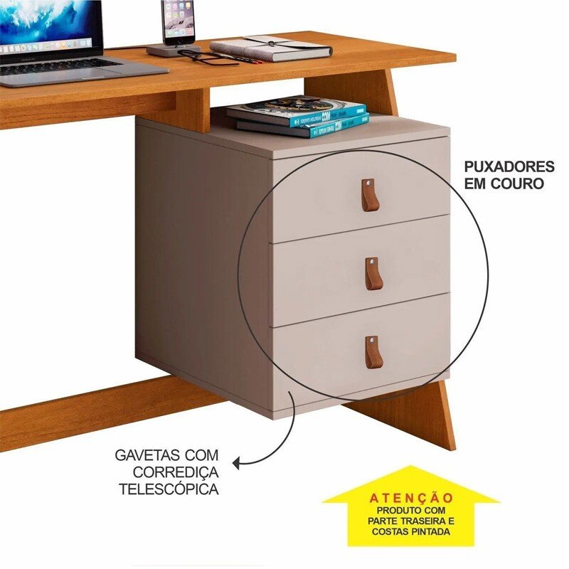 Escrivaninha Gaby Larg. 1.21m Cinamomo/Off 3 Gavetas – JCM