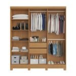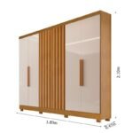 Roupeiro Cabo Frio 6 Portas Ripado 100% MDF Nature/Off Larg. 1.80m – Bianchi