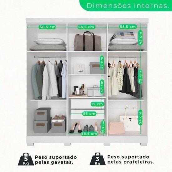 – Cabideiro em alumínio;