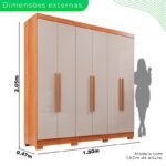 Roupeiro Recife Cinamomo/Off 6 Portas C/Pés Larg. 1.80m – Sallêto