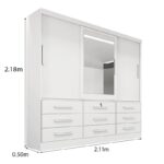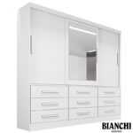 Guarda-roupa Casal Turim Branco 3 Portas 9 Gavetas C/ 1 Espelho 100% MDF Larg. 2.11 – Bianchi