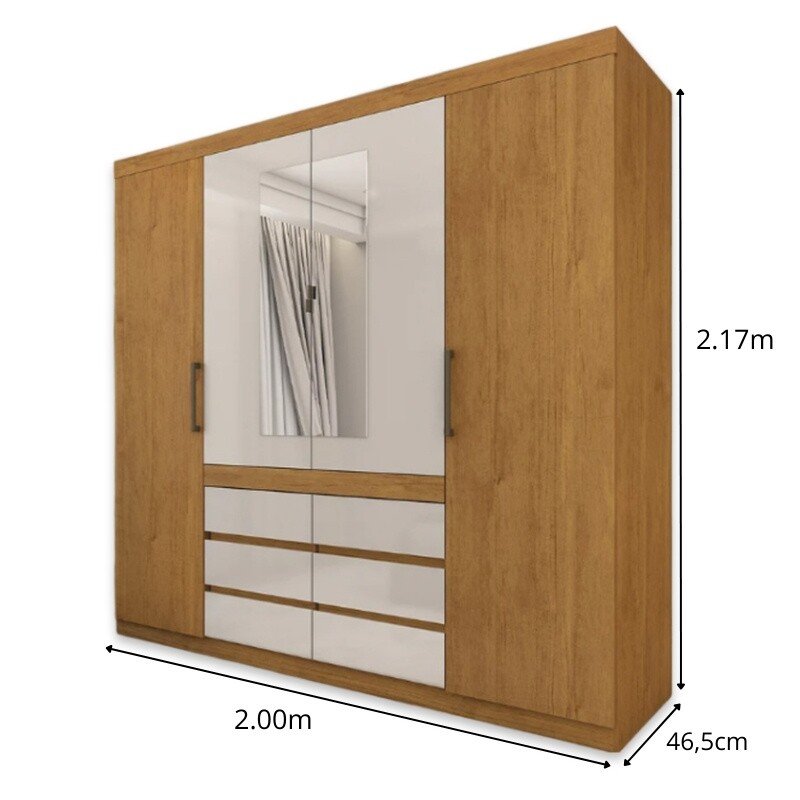 – Portas: 04 portas com dobradiças de aço, sendo duas com espelho