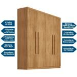 Guarda-roupa Império Nature 4 Portas 3 Gavetas Larg. 1.80m 100% MDF Rufato