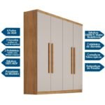 Seja o primeiro a avaliar “Guarda-roupa Império Nature/Off 4 Portas 3 Gavetas Larg. 1.80m 100% MDF Rufato”