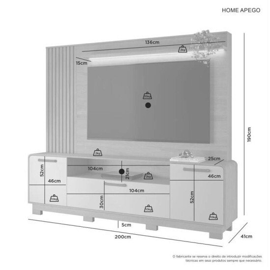 Seja o primeiro a avaliar “Home Apego Larg. 2.00m Cinamomo/Off C/ Luminária LED e Detalhe Ripado TV até 65″ – JCM”