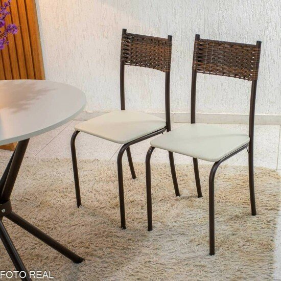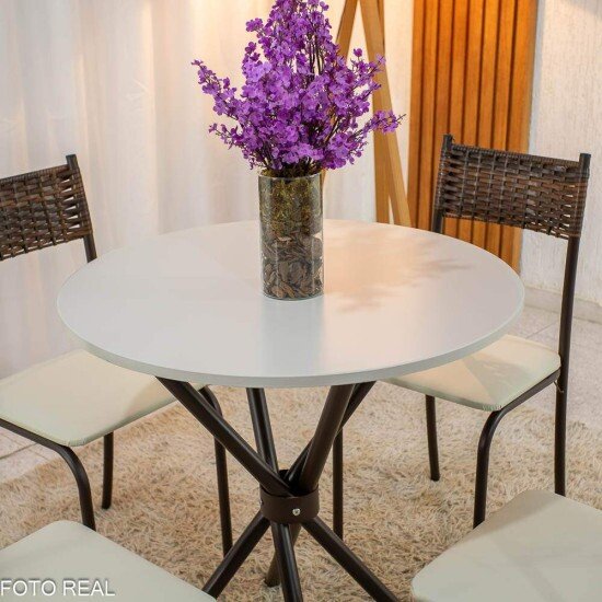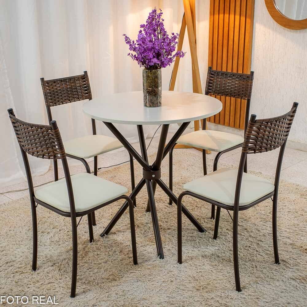 Mesa Atlanta Base Ipanema Marrom Tampo Redondo Pedra Off 75×75 4 Cadeiras Assento Creme – Teixeira