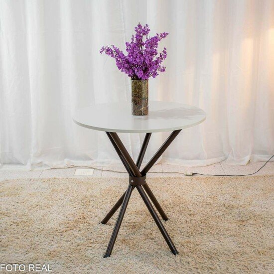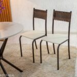 Seja o primeiro a avaliar “Mesa Atlanta Base Ipanema Marrom Tampo Redondo Pedra Off 75×75 4 Cadeiras Assento Creme – Teixeira”