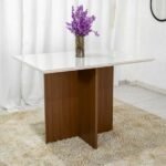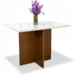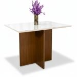 Mesa de Jantar Helo 120×90 Vidro Off/Base Mel – Poliman
