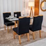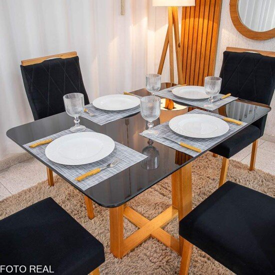 Seja o primeiro a avaliar “Mesa de Jantar Pedro 120×80 Vidro Preto/Base madeira + 4 Cad. Lisboa Veludo Preto 504 Madeira Art Assento – Entregue Montada”