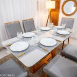 Seja o primeiro a avaliar “Mesa de Jantar Pedro 160×80 Vidro Off/Base Madeira + 6 Cad. Lisboa Veludo Prata 514 Madeira Art Assento – Entregue Montada”