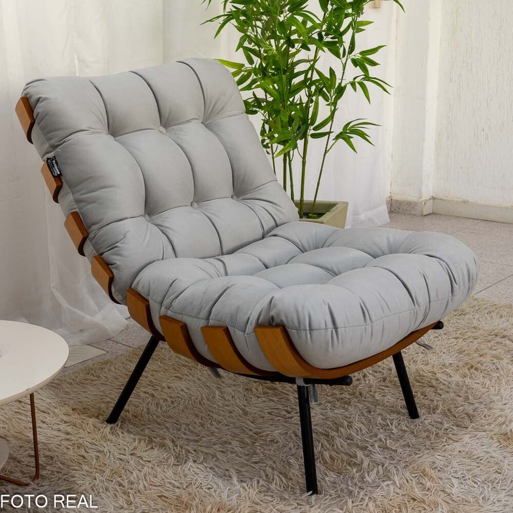 – Assento e encosto: Almofadas 100% fibra de silicone, garantindo total conforto e maciez.