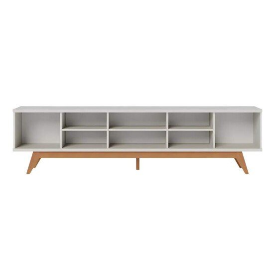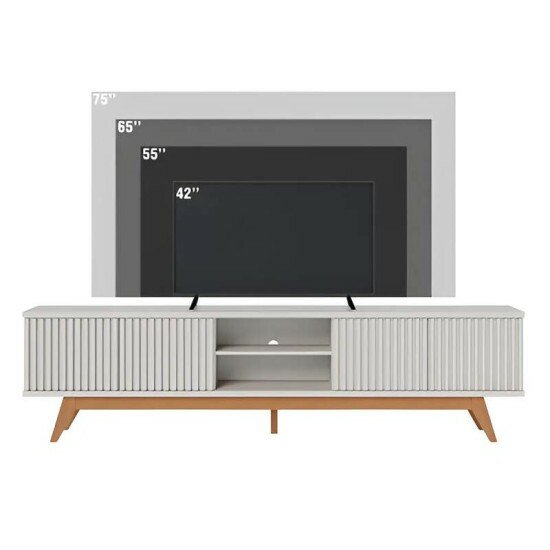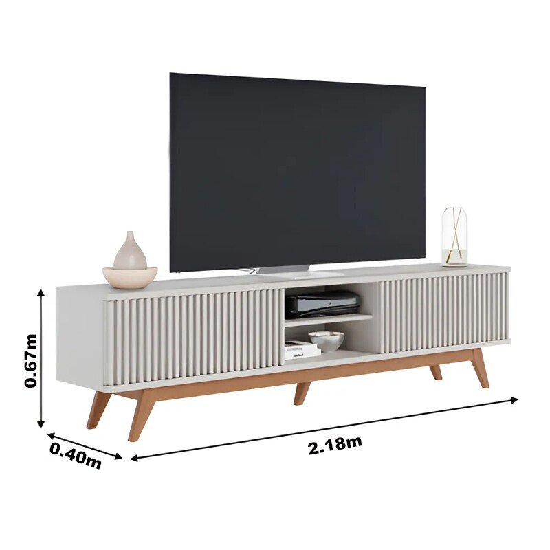 Rack Bancada Fortaleza C/Detalhe Ripado Larg. 2.18m Off White Para TV’s até 75 Polegadas – Colibri