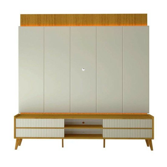Rack Magnífico 212 Larg. 2.18m + Painel Magnífico 220 Nature/Off C/LED e Detalhe Ripado – Gelius