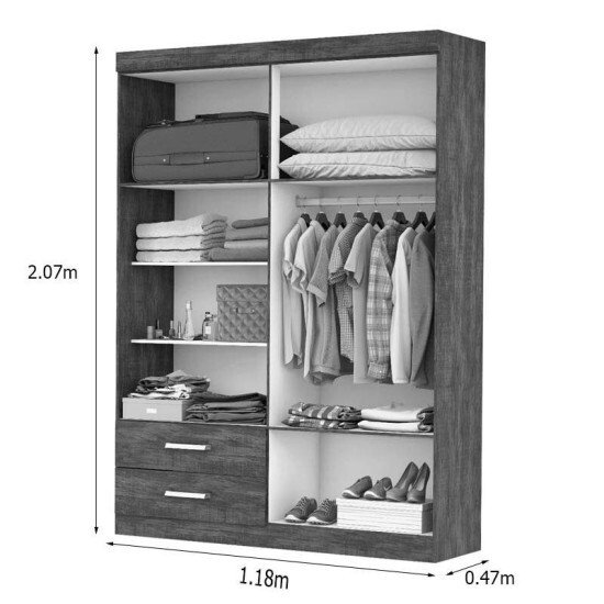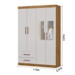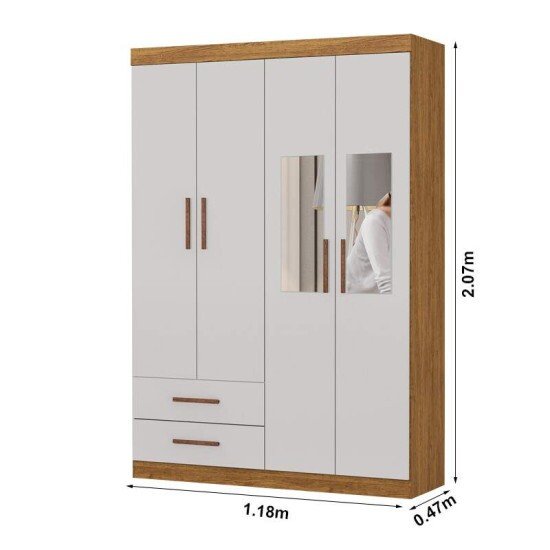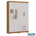 Roupeiro Solteiro Hercules Cinamomo/Off 04 Portas 02 Gavetas C/Espelho e Pés Larg. 1.18m – Carioca