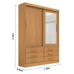 Roupeiro Solteiro Merídian Cinamomo 2 portas c/ 1 Espelho 6 Gavetas Larg. 1.35m – D Doro