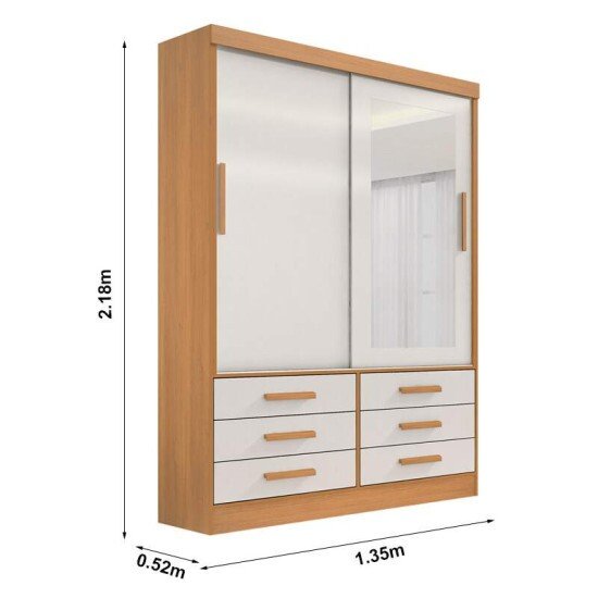Roupeiro Solteiro Merídian Cinamomo/Off 2 portas c/ 1 Espelho 6 Gavetas Larg. 1.35m – D Doro