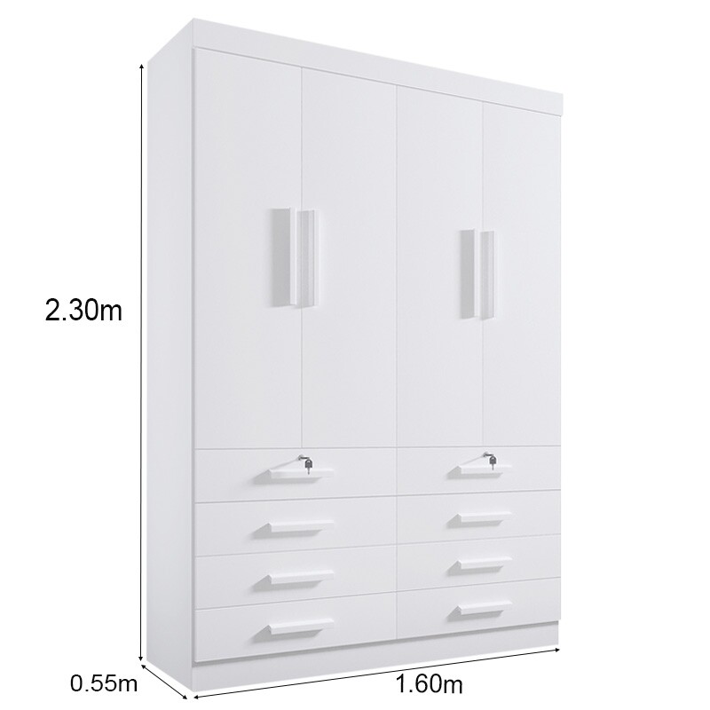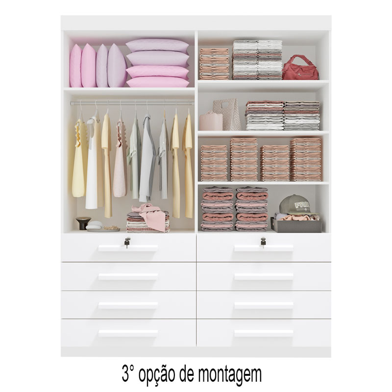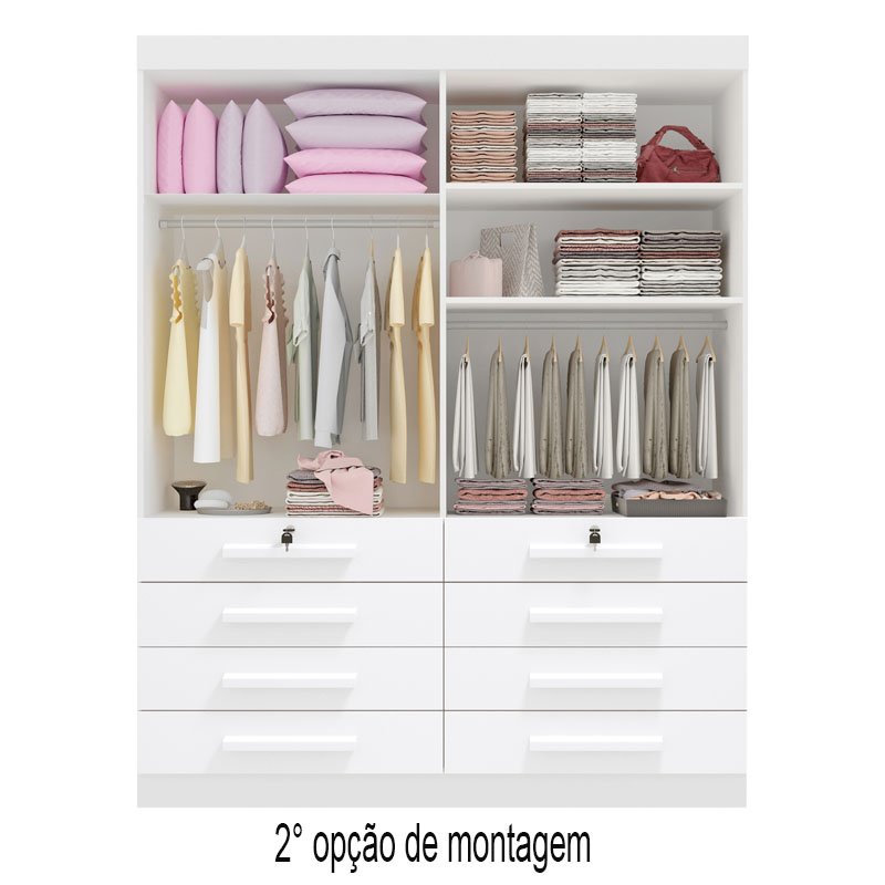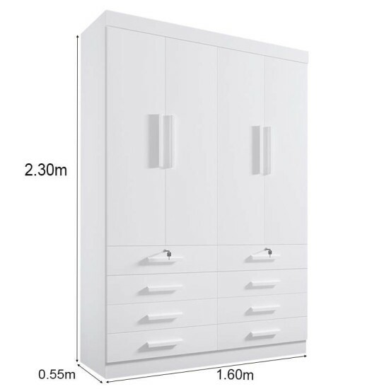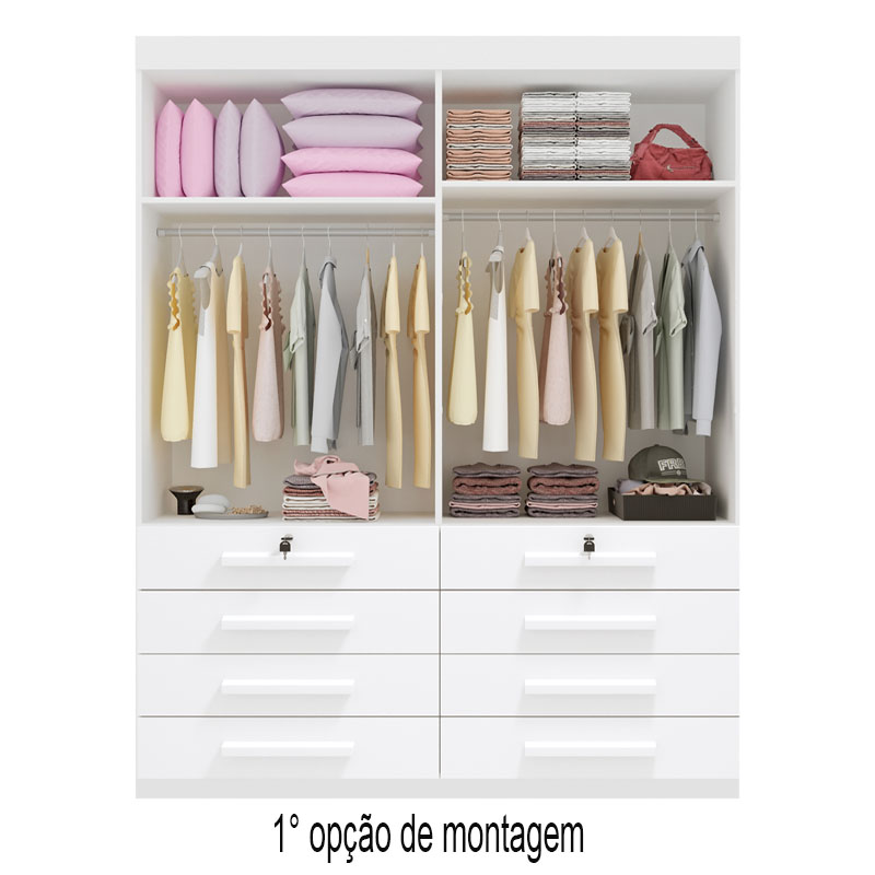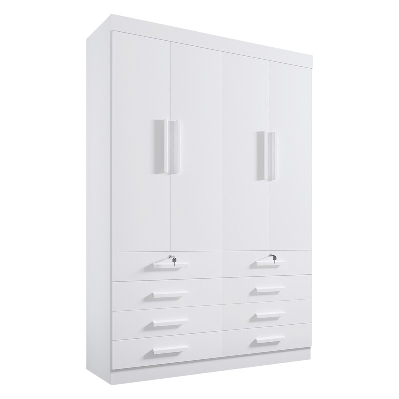 Roupeiro Solteiro Mônaco Branco 4 Portas 8 Gavetas Larg. 1.60m – D Doro