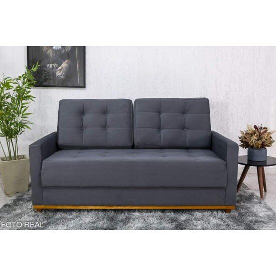 Sofá 3 lugares Living Áustria Veludo Grafite A15 Larg. 1.70m