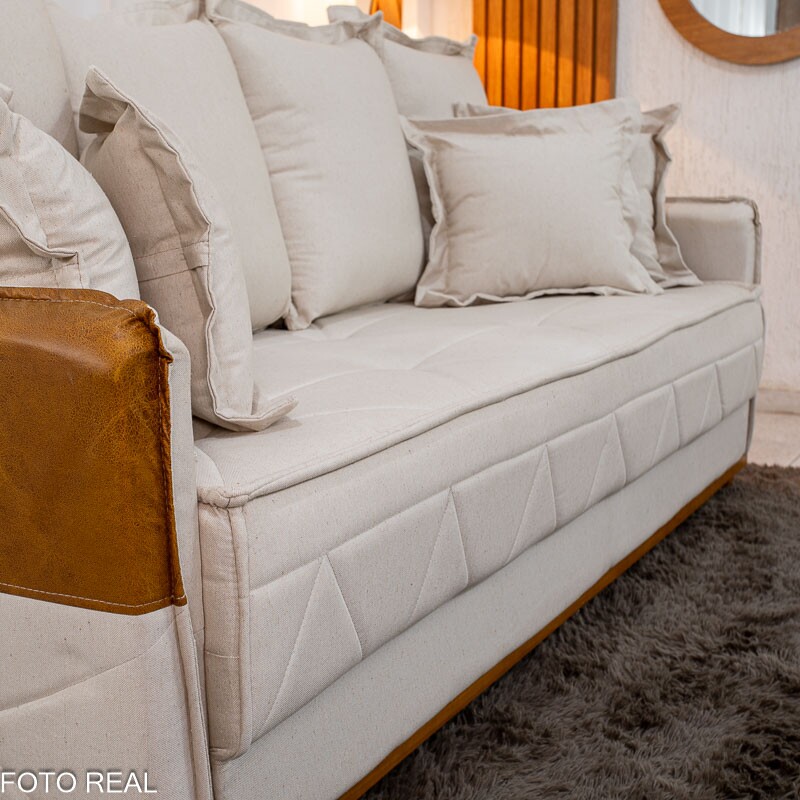 O linho possui uma textura naturalmente sofisticada, que confere ao sofá um aspecto elegante e atemporal.