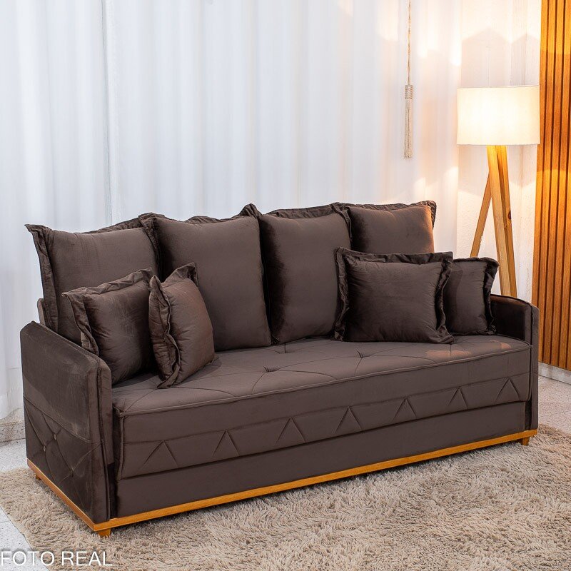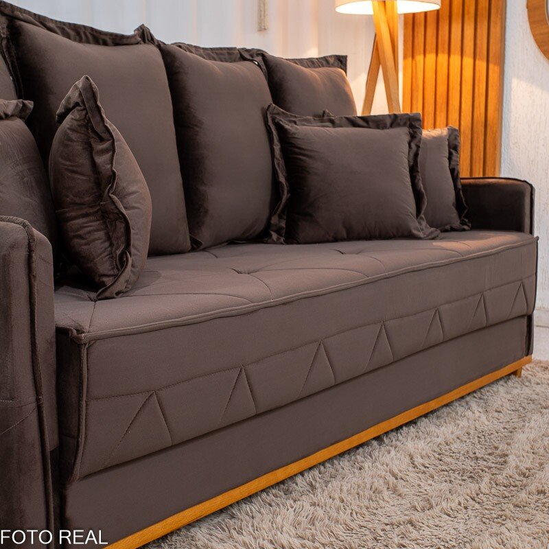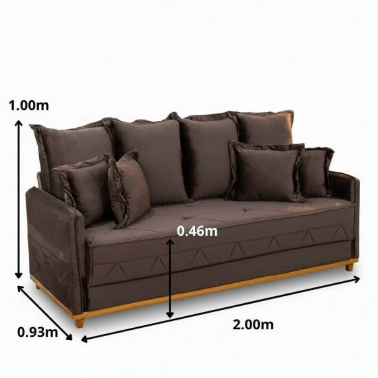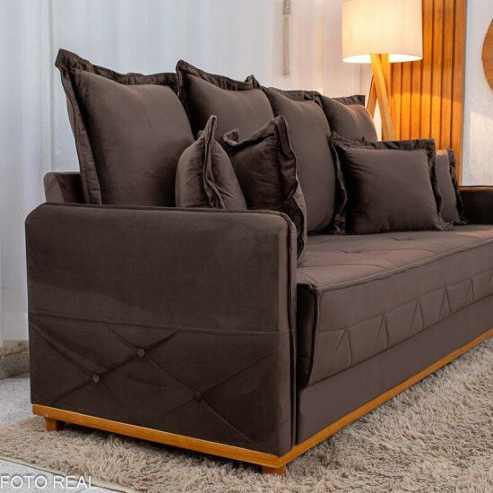 Sofá 3 lugares Vican Larg. 2.00m Veludo Marrom 5004 – Molas Bonnel