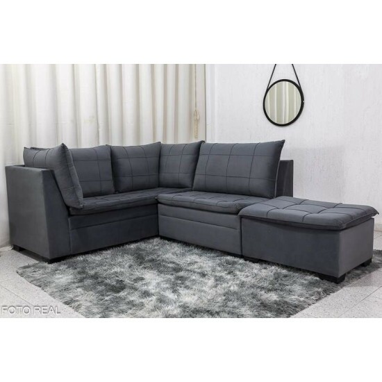 Seja o primeiro a avaliar “Sofá Canto 5 lugares com Puff Viena Veludo Grafite A15”