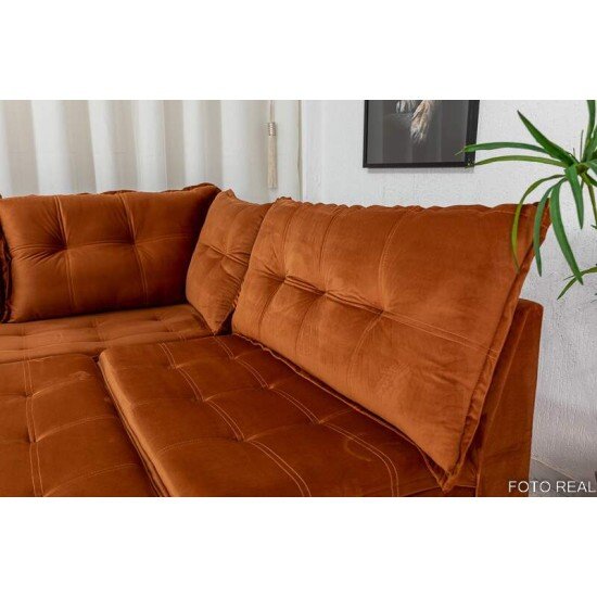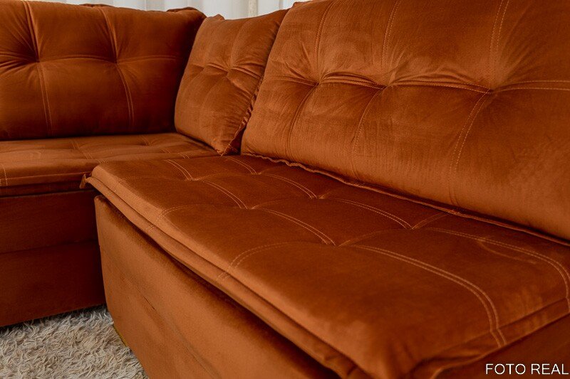 O encosto são com almofadas soltas, compostas de fibra siliconada o que proporciona mais conforto.