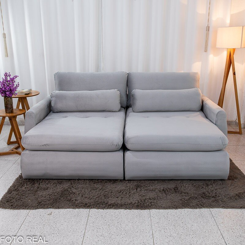 Sofá Retrátil Amaranto Premium 2.30m Veludo Prata 3040/03 – Sem Caixa