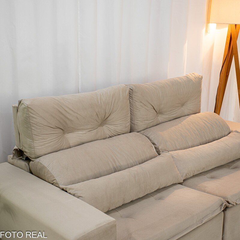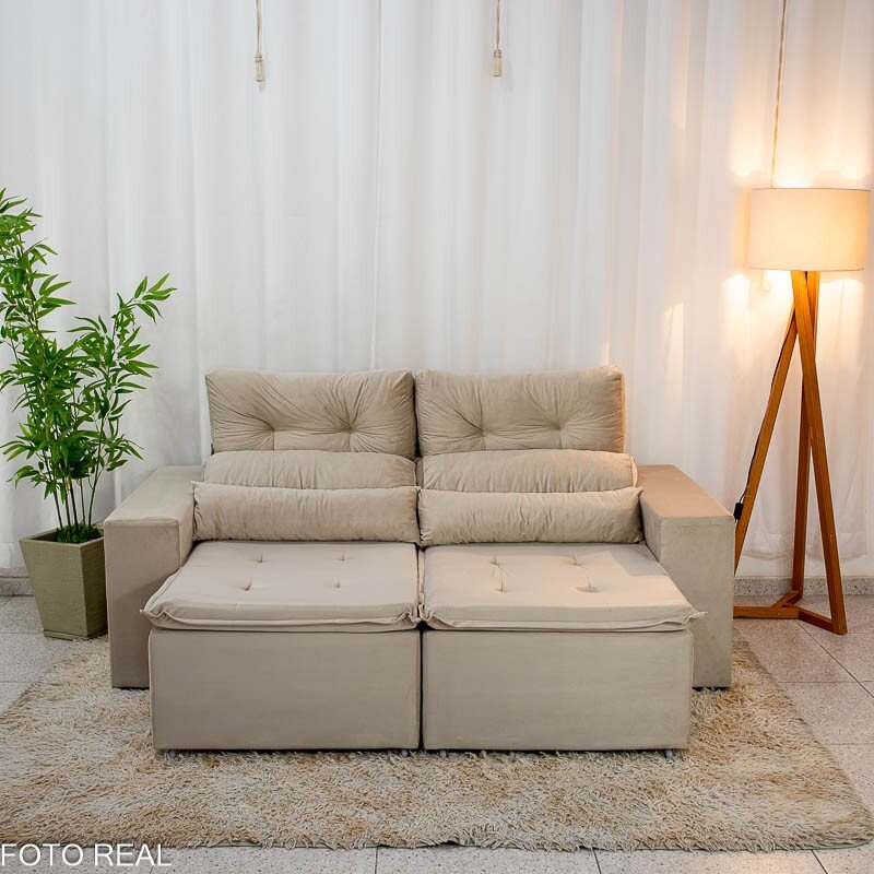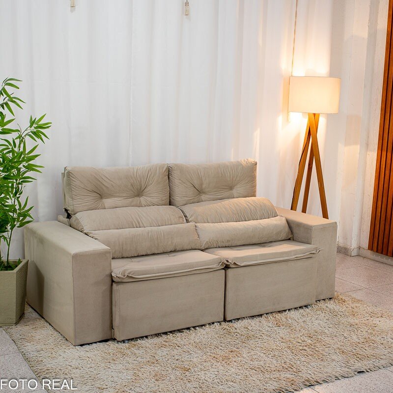 Sofá Retrátil Reclinável Bia 1.95m Veludo Bege – D28