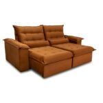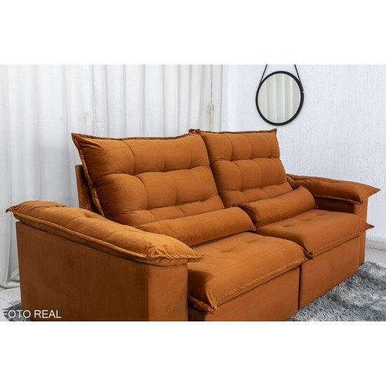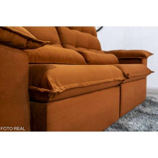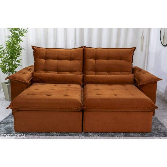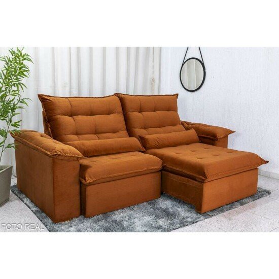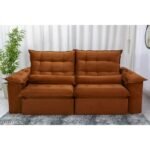 Sofá Retrátil Reclinável Emanuelly 2.30m Veludo Terracota 24 – D28 Soft