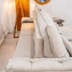 Informamos que é normal haver uma abertura entre os módulos dos sofás retráteis. Essa abertura é necessária para evitar atrito entre os módulos durante o movimento de abrir e fechar, prevenindo o desgaste do tecido.