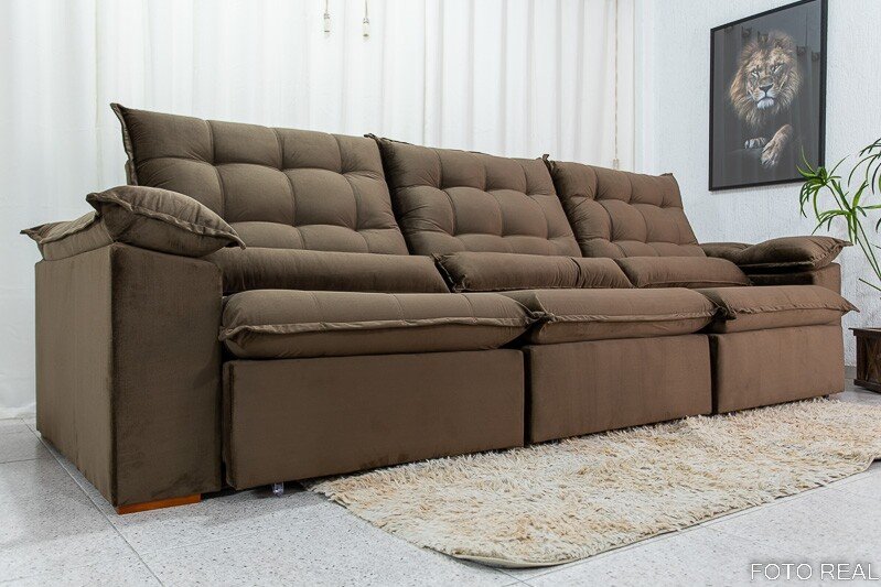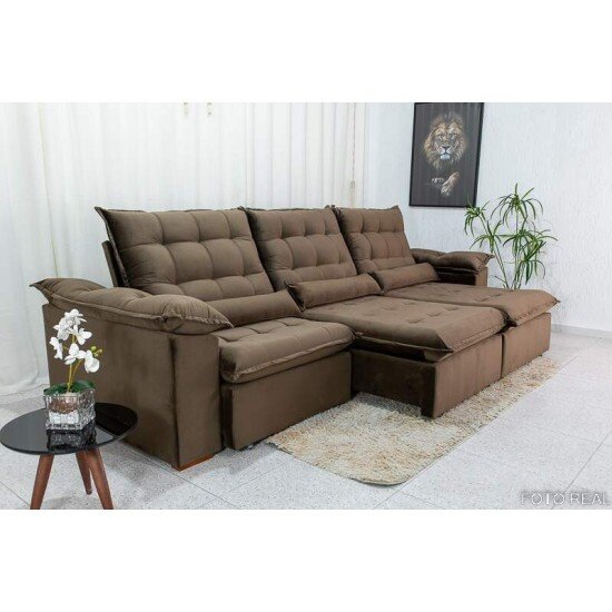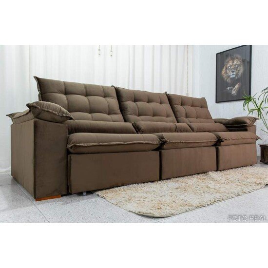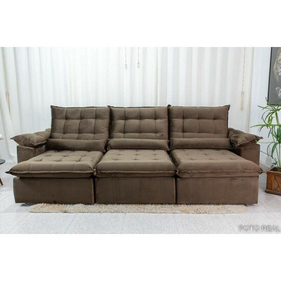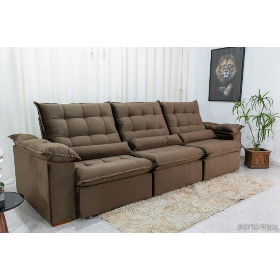 Sofá Retrátil Reclinável Emanuelly 3.20m Veludo Marrom 19 – D28 Soft