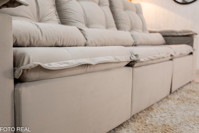 Informamos que é normal haver uma abertura entre os módulos dos sofás retráteis. Essa abertura é necessária para evitar atrito entre os módulos durante o movimento de abrir e fechar, prevenindo o desgaste do tecido.