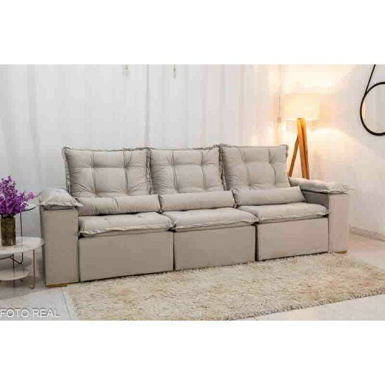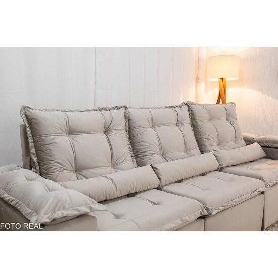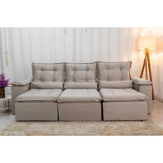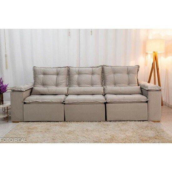 Sofá Retrátil Reclinável Grécia 2.70m Veludo Bege – Sem Caixa