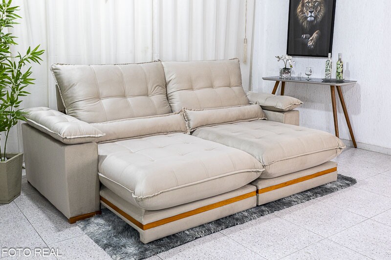 Informamos que é normal haver uma abertura entre os módulos dos sofás retráteis. Essa abertura é necessária para evitar atrito entre os módulos durante o movimento de abrir e fechar, prevenindo o desgaste do tecido.