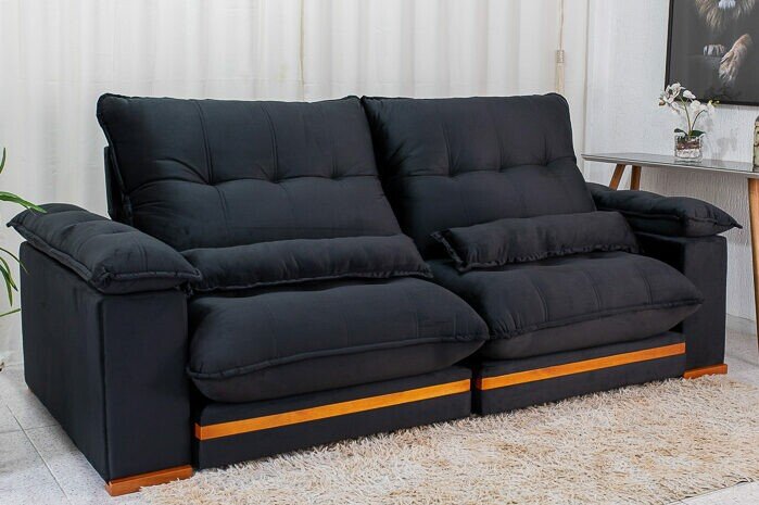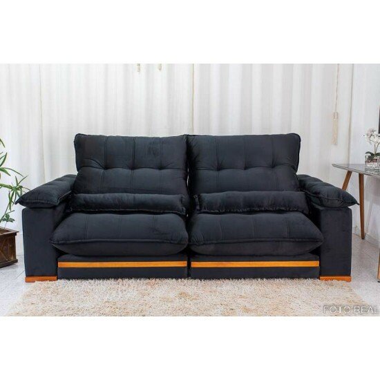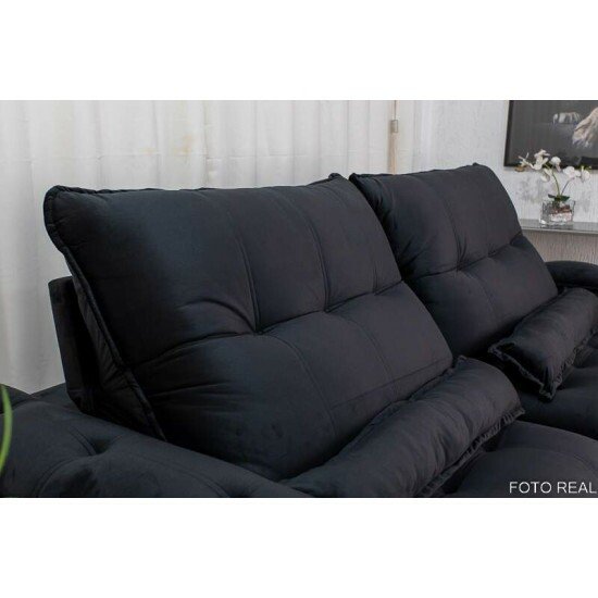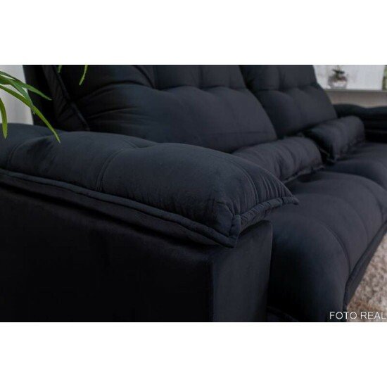 Sofá Retrátil Reclinável Ibis 2.50m Veludo Preto 820 – D33 e Molas Ensacadas
