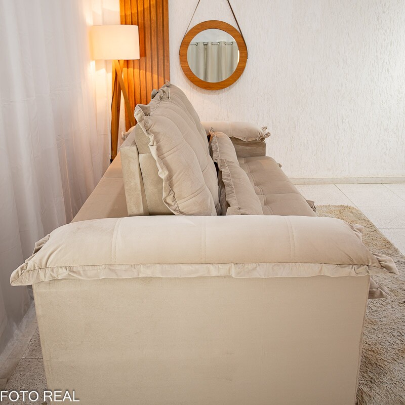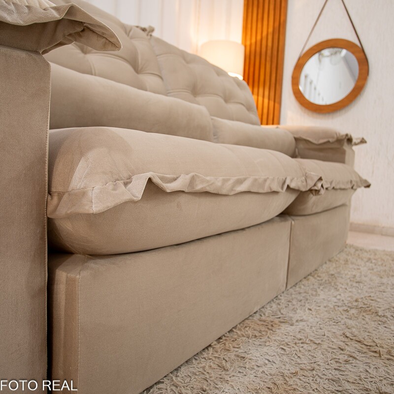 Informamos que é normal haver uma abertura entre os módulos dos sofás retráteis. Essa abertura é necessária para evitar atrito entre os módulos durante o movimento de abrir e fechar, prevenindo o desgaste do tecido.