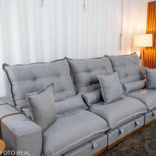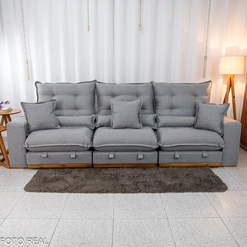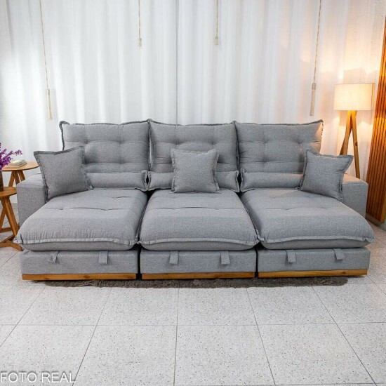 Informamos que é normal haver uma abertura entre os módulos dos sofás retráteis. Essa abertura é necessária para evitar atrito entre os módulos durante o movimento de abrir e fechar, prevenindo o desgaste do tecido.