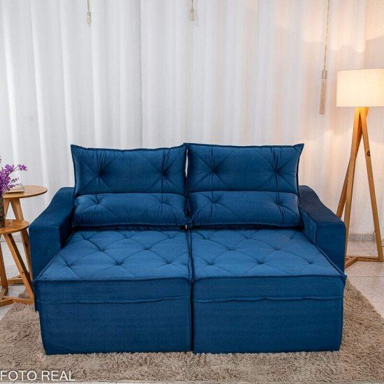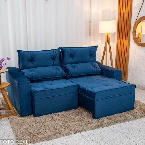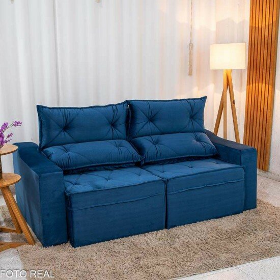 Sofá Retrátil Reclinável Moscou 2.00m Veludo Azul A16