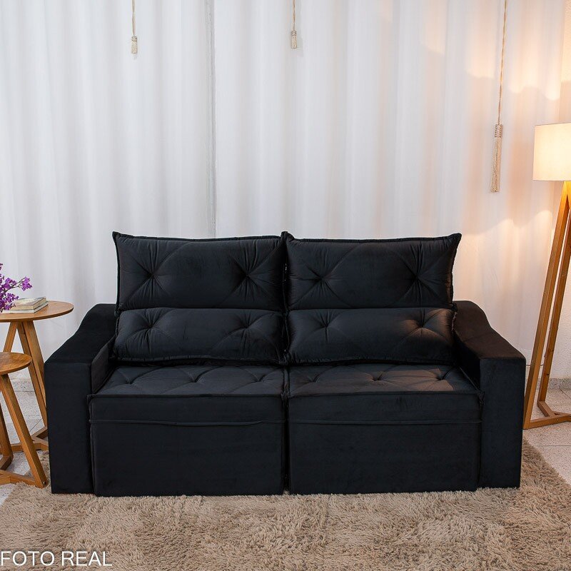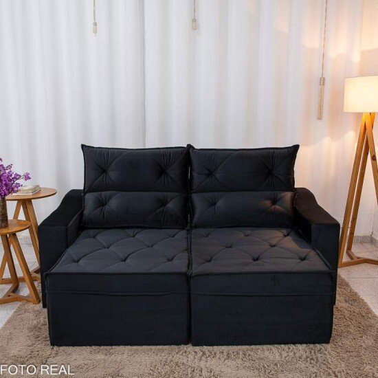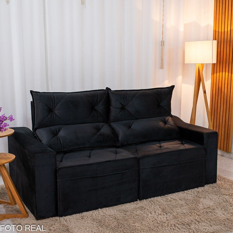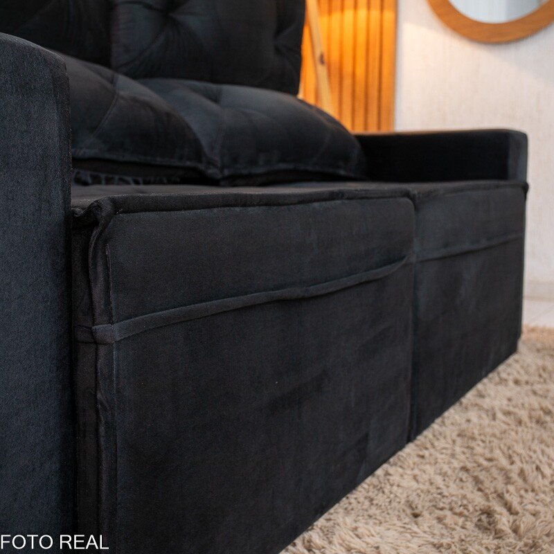 Sofá Retrátil Reclinável Moscou 2.00m Veludo Preto A14