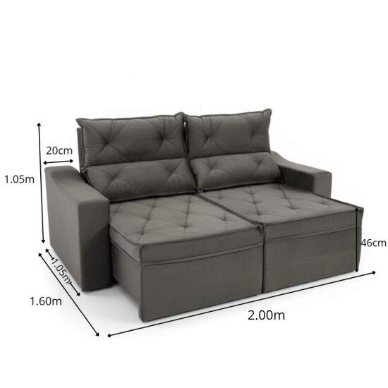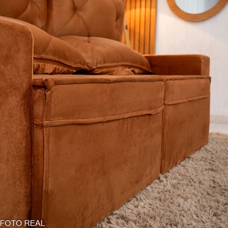 Sofá Retrátil Reclinável Moscou 2.00m Veludo Terracota A62