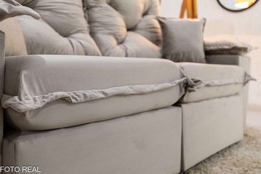 Informamos que é normal haver uma abertura entre os módulos dos sofás retráteis. Essa abertura é necessária para evitar atrito entre os módulos durante o movimento de abrir e fechar, prevenindo o desgaste do tecido.