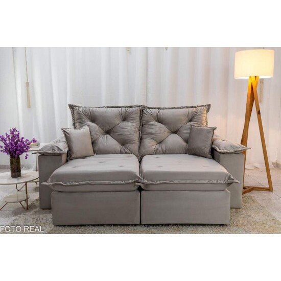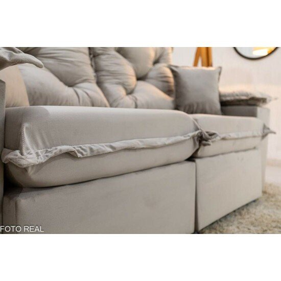 Sofá Retrátil Reclinável Porto Madri 2.00m Veludo Bege – D28 Pró Aditivada