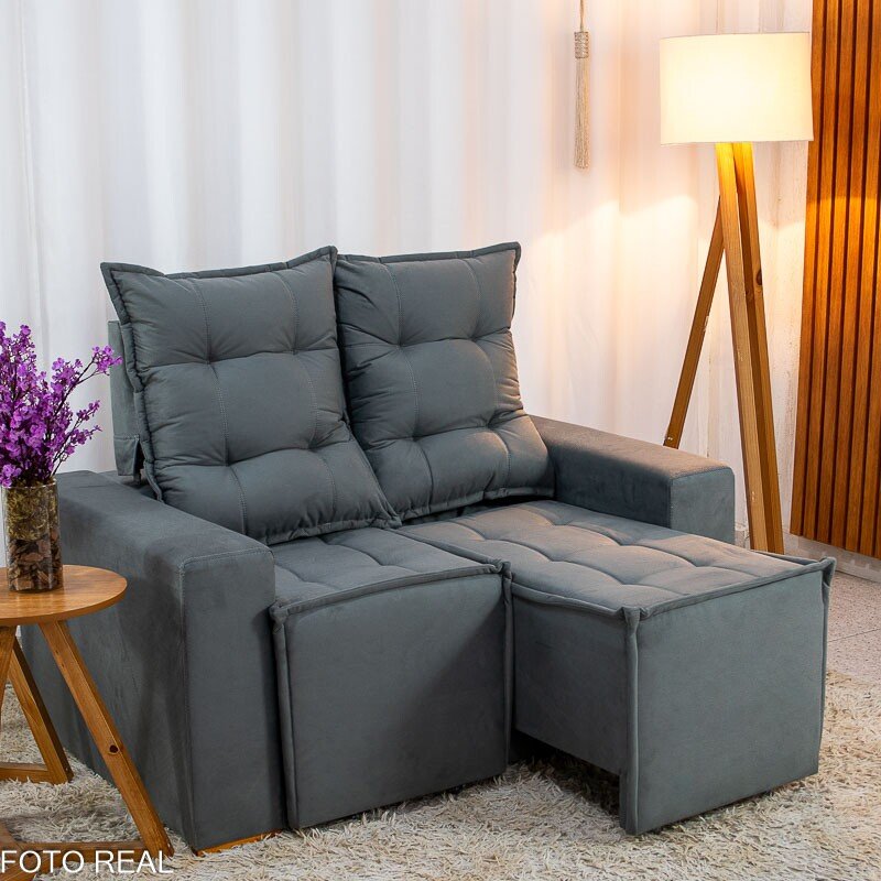 Sofá Retrátil Reclinável Rafaela 1.40m Veludinho Cinza A15